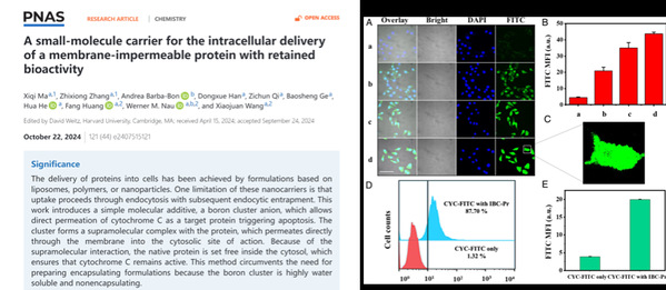 该研究对小分子球状十二硼酸盐簇的超离液效应进行了重要的应用拓展,审稿专家高度评价该成果,一致认为这一发现将为实现高效的蛋白质跨膜递送提供新途径,为蛋白质药物的开发和疾病治疗提供创新性策略。