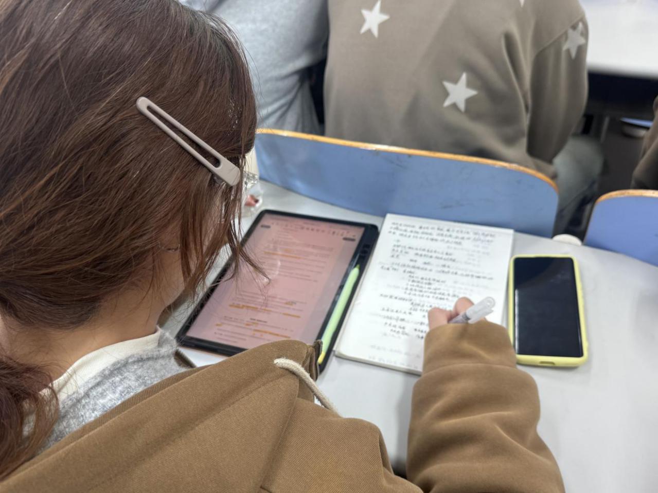 唐岛湾校区党课现场,学员们认真记笔记