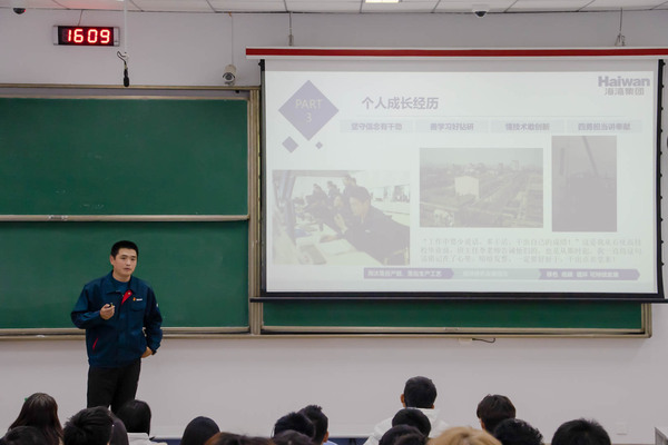 接着,位浩向我们分享了他的教育经历和工作经历,所讲述的每一个细节都彰显出他对化工事业的热爱和匠心精神,让我们仿佛置身于化工生产的现场,亲身体验到了化工行业的魅力与挑战。他告诉我们要坚守信念,有干劲,善学习好钻研,懂技术敢创新,勇担当讲奉献,同时他还告诉我们,务必要坚守学习与探索的精神,要把精益求精内化为习惯,不能惧怕吃苦,要有敢于啃硬骨头的勇气。唯有劳动才能够创造幸福,只有实干才能够成就伟大的事业。