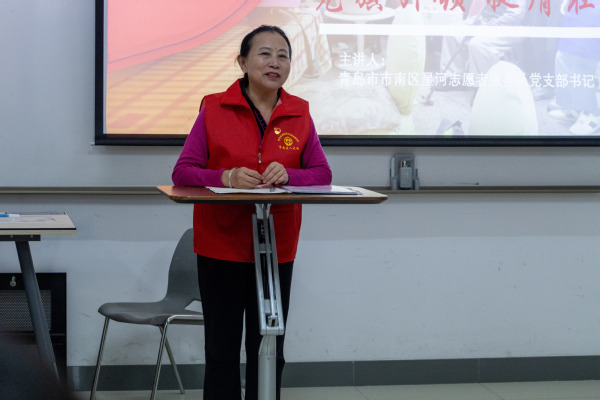 刘爱民讲述了身处新时代如何做挺膺担当的合格党员。她讲述了星河志愿服务队中两位70多岁的高龄志愿者数年如一日坚守付出的感人经历,只因一句“我们是党员”。她指出,党员的初心并不需要任何华丽的辞藻来修饰,只需要朴实的语言,并献出自己的一份爱心就足够了。她鼓励积极分子们做好每件平凡的小事,就可以创造出不平凡的成就。随后,刘爱民又引用了矿井塌方,党员矿工身先士卒寻找出路,最终使全员获救的故事,讲述了党员的先锋带头作用,告诫积极分子们要践行人民利益至上,全心全意为人民服务的宗旨,发扬“爱人民”的精神,并将这些精神传承下去。