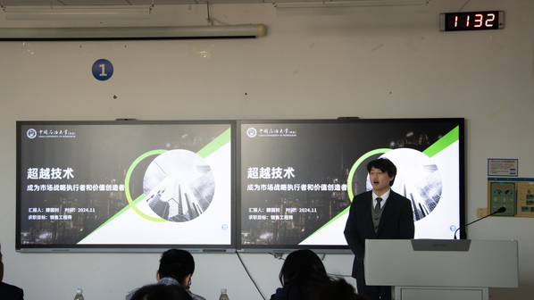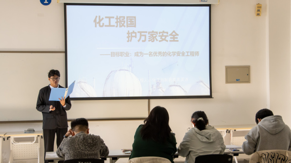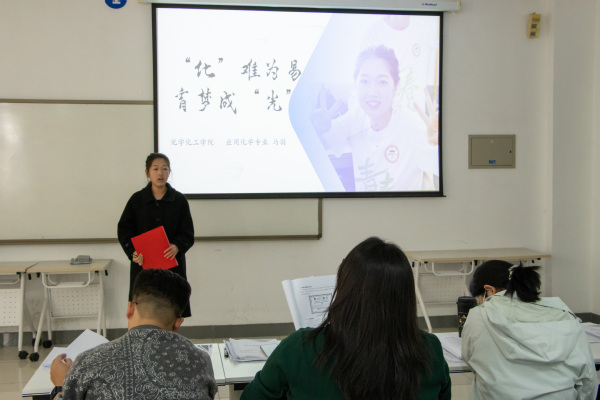 在激烈的角逐中,选手们通过PPT主题陈述向评委和观众展现个人的职业目标、成长历程积累的岗位胜任力和发展潜力。选手的职业目标既有立志能源报国的化工工程师、有推进科技创新的研发工作人员,也有为民服务的基层干部和立德树人的人民教师。“到行业中就业,到基层去锻炼,到祖国需要的地方去成长”成为选手们的同向选择,充分体现了专就融合的成长理念和深厚的家国情怀。