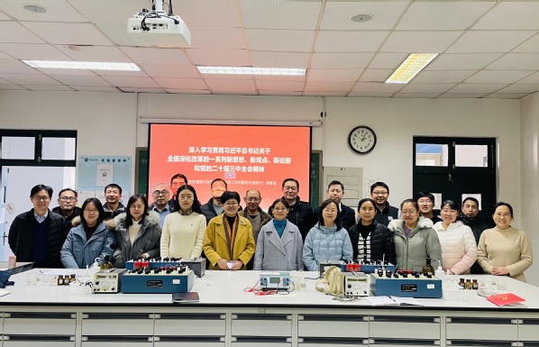 为深入学习贯彻党的二十届三中全会精神,推动精神落地落实,进一步提升党员教师的政治素养和理论水平,2024年11月29日下午,化学系党支部和化学实验中心党支部在基础实验楼A509联合开展党的二十届三中全会精神专题学习。活动由化学系党支部书记王创业同志和化学实验中心党支部书记张国栋同志共同主持,两个支部的党员教师参加。