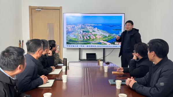 首先,陈小博介绍了学院的发展历程、机构人员以及师资队伍等相关情况。冯胜对学院的热情接待表示感谢,并就连云港徐圩新区石化产业情况进行了详细介绍。他表示,希望进一步深化徐圩新区与学院在科技人才方面的深度合作,继续推动连云港石化产业高质量发展。接着,徐光辉就学院学科专业建设情况以及目前学生就业所面临的形势与挑战进行了详细介绍。交流环节,双方围绕校企人才培养、科技成果转化以及产学研合作等方面开展对接交流。双方一致认为,应充分利用各自优势资源,加强科研合作,共同推动学生就业与新区产业发展进一步提升。
