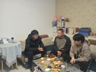 1月21日,辅导员栾琳前往2021级学生小于家进行家访,过程中,栾琳详细了解受访学生家庭以及目前的生活情况,并对该生的学业问题进行了解答。栾琳与学生交流了职业规划和未来发展,了解学生目前就业意向,鼓励学生要乐观向上,做好假期的规划,保持良好作息,积极参与体育锻炼。