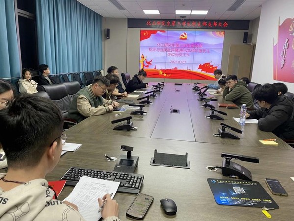 2025年3月7日下午,化工研究生第三学生党支部在国重楼219会议室开展批评与自我批评暨2024年度民主评议党员工作。活动由党支部书记马翔宇主持,支部全体党员、预备党员参与。