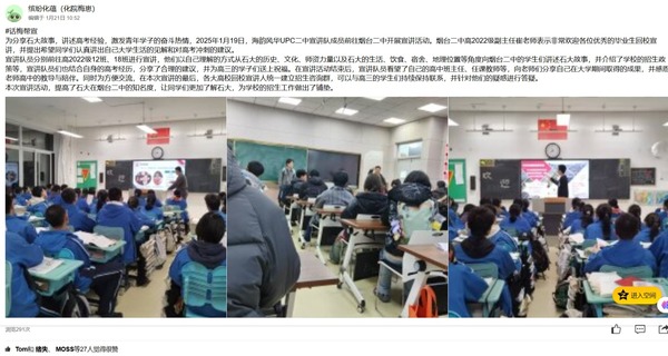 2025年1月19日,化工(菁英)2207的吴天毅同学在山东省烟台第二中学开展资助政策宣传活动。他不光讲解太阳成集团tyc33455cc的招生政策、教育资源、资助政策等,还分享了自己在石大校园的亲身经历。这次宣讲活动不仅让他回顾了自己的大学成长历程,也更加明白了“传承”与“帮助”的真正含义。他表示:“教育帮扶不仅是经济支持,更重要的是建立信心——通过具体可行的路径规划,让每个学生都相信自己有改变命运的能力。未来我会继续参与这类活动,把政策解读与个人经验相结合,让更多学生切实感受到社会的支持力量。”