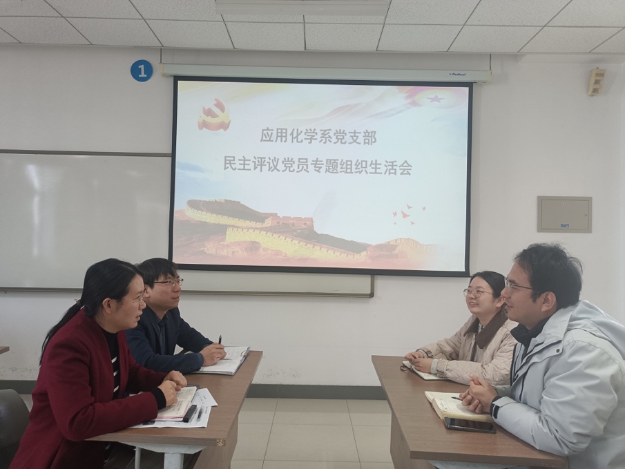 3月13日,应用化学系党支部在综合楼A506会议室召开2024年度组织生活会暨民主评议党员。会议由党支部书记杨修洁主持,支部全体党员参加。