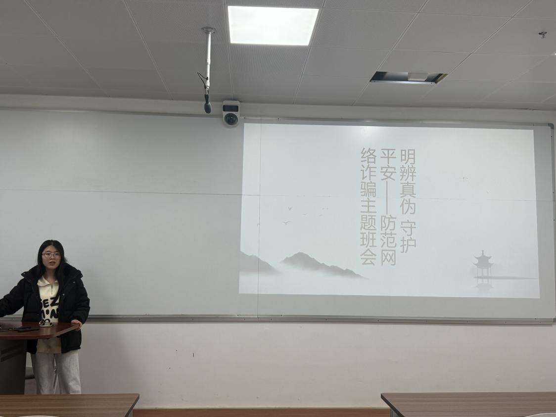 面对网络诈骗高发态势,化研2403班、2405班、2406班以“明辨真伪 守护平安”为核心,构建“知识科普+案例警示+实战演练”立体防御体系。2403班通过播放反诈宣传片、开展“火眼金睛识骗局”互动问答,让抽象概念具象化;2405班则引入真实案例库,分享身边人遭遇的“杀猪盘”经历,引发强烈共鸣,同学们自发制定《班级反诈公约》,承诺做到“不轻信、不透露、不转账”;2406班创新采用“教育+实践”模式,在学习《中华人民共和国刑法》相关条款后,组织情景模拟再现“冒充公检法诈骗”场景,同学们运用刚学的“三不一多”原则成功识破骗局。
