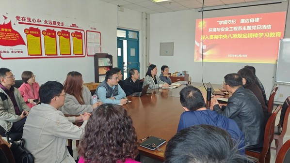 3月26日上午,环境与安全工程系党支部在工科楼A617会议室召开学规守纪,廉洁自律主题党日活动,深入学习和贯彻中央八项规定精神。