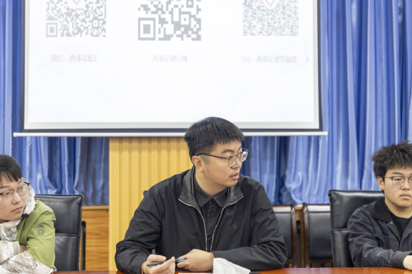 会上,王心宇围绕项目背景、政策保障、招募流程等详细介绍了西部计划项目。并将西部计划优秀志愿者刘勇、古丽亚尔·斯地克、文锦超、王瑞崟的基层服务经历与经验为同学们做了分享。互动环节中,学生们踊跃提问,重点关注岗位匹配、服务地生活条件及职业发展路径。2021级学生李文轩表示:“学长们的经历让我明白,基层不仅是历练的舞台,更是实现价值的沃土。我非常期待用专业知识助力乡村振兴!”