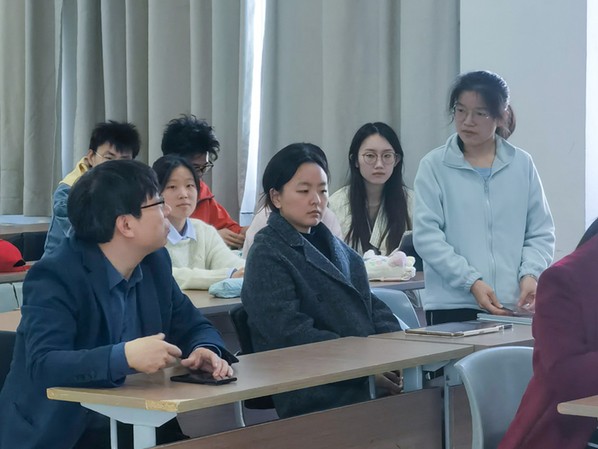 在交流环节,老师为支部学生在学习及生活中遇到的问题进行答疑。同学们就未来就业方向及自身如何努力向老师提问,陈坤老师建议关注就业单位相关信息,瞄准方向发力,并以石油方向的“三桶油”为例,详细讲解如何为未来工作积极准备。杨修洁老师则强调专业知识学习的重要性,从教育角度出发,表示将调整培养方案,以培养更符合社会新质生产力发展需求的人才。