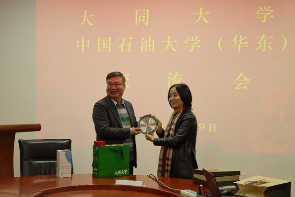 刘欣梅院长与台湾大同大学来宾交换礼物