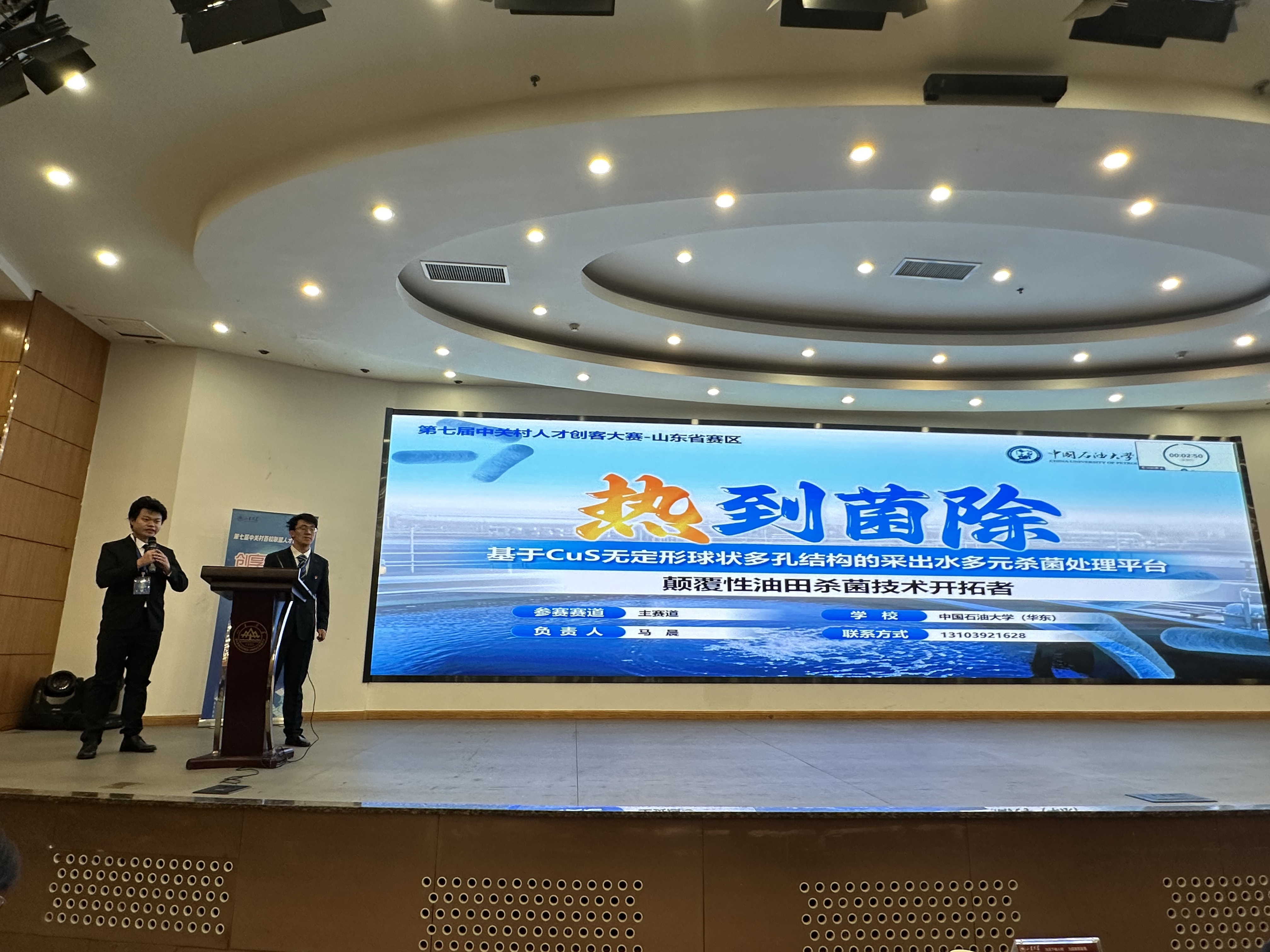 4月19日,第七届中关村人才创客大赛山东区域赛在山东大学(威海)玲珑学堂正式落下帷幕。由我院王继乾、王栋、李慧、徐海老师指导,本科生2022级学生马晨负责的项目《热到菌除——基于CuS无定形球状多孔结构的油田污水细菌光热处理平台》斩获冠军,并入围全球半决赛;我院金鑫、严文娟、王兆兴老师指导,本科生2022级王雅琦负责的项目《海纳百酸——首创海藻糖基中分子稀有果酸产品群》斩获三等奖的优异成绩。在众多高校团队中脱颖而出,为学校和学院争得了荣誉。