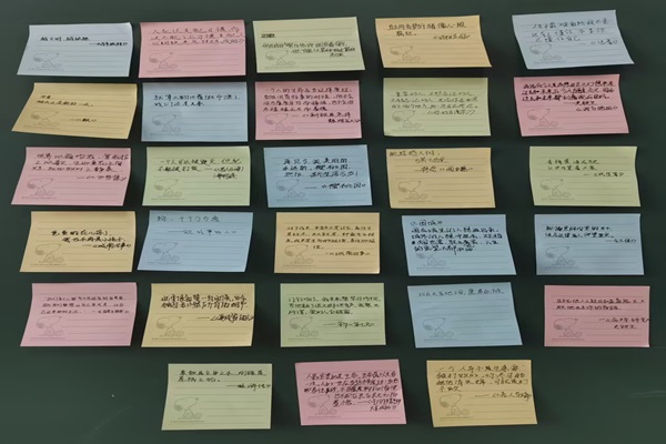 活动伊始,宋明轩阐释阅读对青年培根铸魂的重要意义。在好书分享环节,支部成员代表以书为媒展开对话:结合保尔·柯察金的成长轨迹,解读《钢铁是怎样炼成的》中“人的一生应当这样度过”的信念之光;以《活着》中福贵的人生起伏,剖析生命韧性与时代印记的交响;通过《追风筝的人》中哈桑的“为你,千千万万遍”,探讨救赎主题下的人性光辉。在“墨香留痕”特色环节,成员们将书中震撼心灵的片段落笔成笺——“真正的送别没有长亭古道,只是在一个平常的清晨”(《城南旧事》)、“给岁月以文明,而非给文明以岁月”(《三体》),这些承载着思想火花的便签在传递中构筑起立体化的阅读图景。在每位代表分享完“好书”后,会议进入“书页拾光”环节,每位成员写出自己对书中印象最深的一句话或书中印象最深的一幕。一张张便签上的话,如点点灯塔照亮阅读航程,见证着青春与经典的永恒对话。随着大家思绪之笔落下,本次活动也达到了尾声。