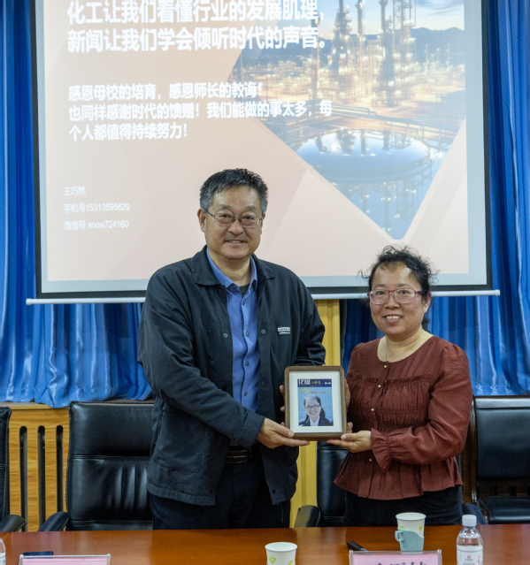 张永宁感谢王巧然的精彩报告,并向学生记者提出三点建议。一是要学好专业知识,在采访和报道中提升自己对行业的洞察力,帮助自己及时调整职业发展路径;二是要善于发现问题,要充分挖掘新闻线索背后的深层意义,不断提升产出高质量新闻报道的业务能力;三是要积极关注当下热点和未来前沿,为宣传化工行业正能量和树立正面形象下功夫,发挥新闻宣传工作的社会价值属性。