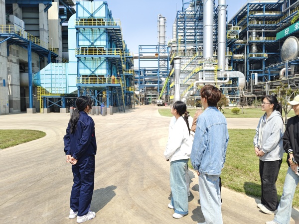 最后,在讲解员带领下,同学们走近丙烯脱氢和聚丙烯生产线,参观高大的生产装置、交错的运输管道还有高效的销售运送体系。讲解员表示:“现在是高精尖生产、智能化生产时代,金能化学在不断改进生产方法、增加新的产业链,实现产业升级与转型。欢迎石大的化院学子毕业后加入金能化学,为我们国家新兴化工行业注入新鲜血液。”