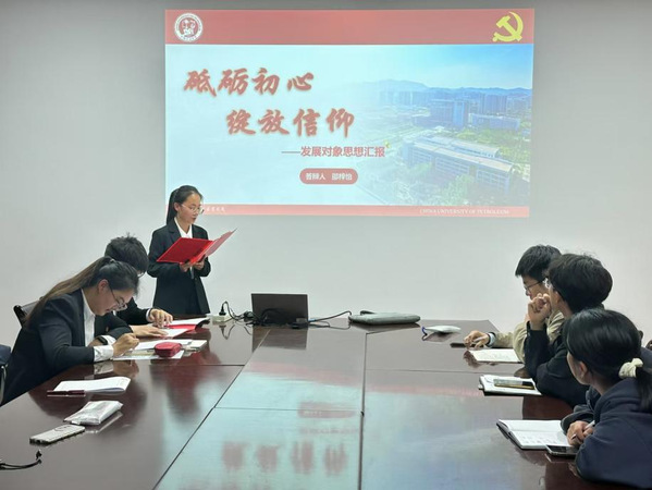 发展对象通过PPT述职形式,依次将自己确定为入党积极分子以来的现实表现以及本次发展对象培训的学习体会向支部进行汇报。评委对发展对象作出点评,强调要将组织入党与思想入党统一于日常修行。