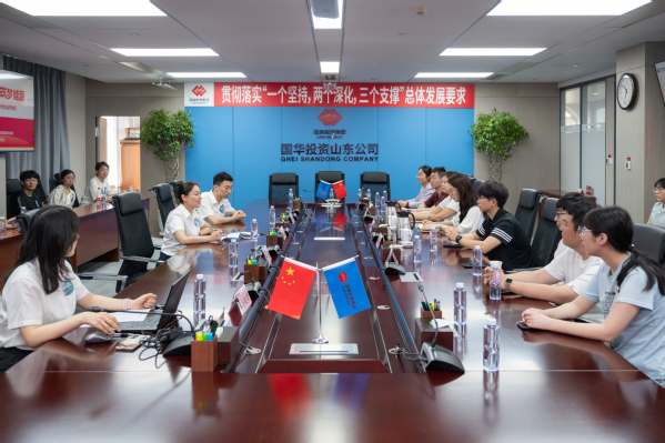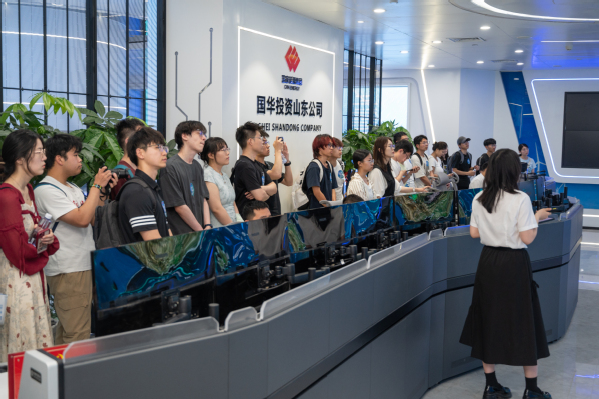 当日上午,同学们抵达国华投资山东分公司,受到公司工作人员的热情接待。随后,大家首先来到公司展厅,通过丰富的图文展示、直观的模型,全面了解国华投资山东分公司的发展历程、业务布局和新能源项目成果。