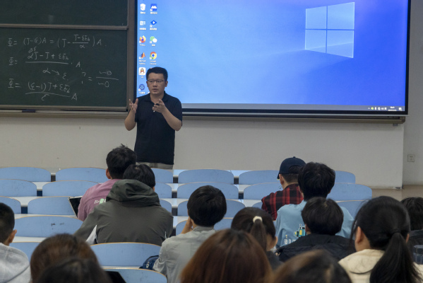 金鑫结合学科发展趋势与学生成长需求,为新生解析菁英班的育人优势。他通过往届优秀毕业生案例,生动展现了菁英班学生在科研竞赛、学术深造及就业发展中的突出表现,并指出:“菁英班不仅是学术能力提升的平台,更是责任意识与创新精神的培育基地。”他鼓励学生们多尝试不同的专业方向,找到自己真正热爱的领域。在互动环节,金鑫教授就学生提出的专业分流、课程设置等问题逐一解答,现场气氛热烈。