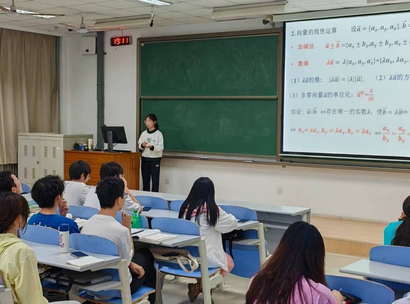 课堂上,耿娜娜充分发挥朋辈导师的独特优势。她结合自身丰富的学习经验,运用通俗易懂的语言和生动的生活实例,深入浅出地讲解了高数第七章“空间解析几何与线性代数”的核心知识。从空间直角坐标系的构建原理,到向量运算在实际问题中的巧妙应用;从线性方程组求解的逻辑思路,到矩阵变换背后的数学奥秘,每一个知识点都讲解得细致入微、清晰透彻。同学们全神贯注地投入课堂,积极与导师互动交流,主动提出学习过程中遇到的困惑,课堂氛围热烈而浓厚。