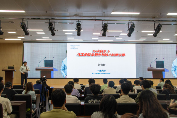 讲堂上,刘有智围绕“双碳背景下化工的使命担当与技术”这一主题展开。他首先剖析了“化工专业特有的自豪与自信”,指出化工从利用天然物质到发展加工技术,再到实现工业化生产,推动了人类文明现代化;将实验室成果转化为规模化生产,创造出国家与人民所需的人造物质。他回顾了化工在工业革命、农业、医药等领域的贡献及其与国民经济、人民生活的紧密联系,重点介绍了化工过程强化技术,指出传统技术存在效率低、能耗高的问题,而新型技术通过强化生产设备实现革新,例如静态混合反应器(SMR)能高效混合反应;蜂窝及规整结构催化反应器可增大催化接触面积。这些新型反应器代表了行业高效绿色的发展方向。对于化工行业面临的挑战与使命,刘有智简要提及环保压力、技术瓶颈等挑战,强调行业需肩负创新与绿色发展的使命。在担当时代化工使命方面,他分享了业内坚守奉献的故事。此外,他还结合自身经历,就教师成长给出了几点体会和建议。互动环节,就师生提出的职业规划、行业绿色转型路径等问题,刘有智结合经验进行了解答,与师生深入交流,现场气氛热烈。