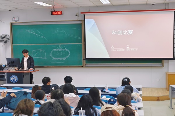 王兆兴老师从三大赛的赛事背景、参赛流程、评审标准及选题方向展开讲解。他强调,“大挑”侧重学术性与创新性,需聚焦前沿科研问题;“小挑”注重商业落地价值,需突出项目的社会效应与市场潜力;国创赛则强调自主性与可行性,鼓励结合专业课程开展基础研究。针对学生普遍关心的“如何选题”问题,他以往届优秀项目为例,建议从学科交叉领域、社会热点议题及实验室课题延伸方向寻找突破口,避免选题同质化。