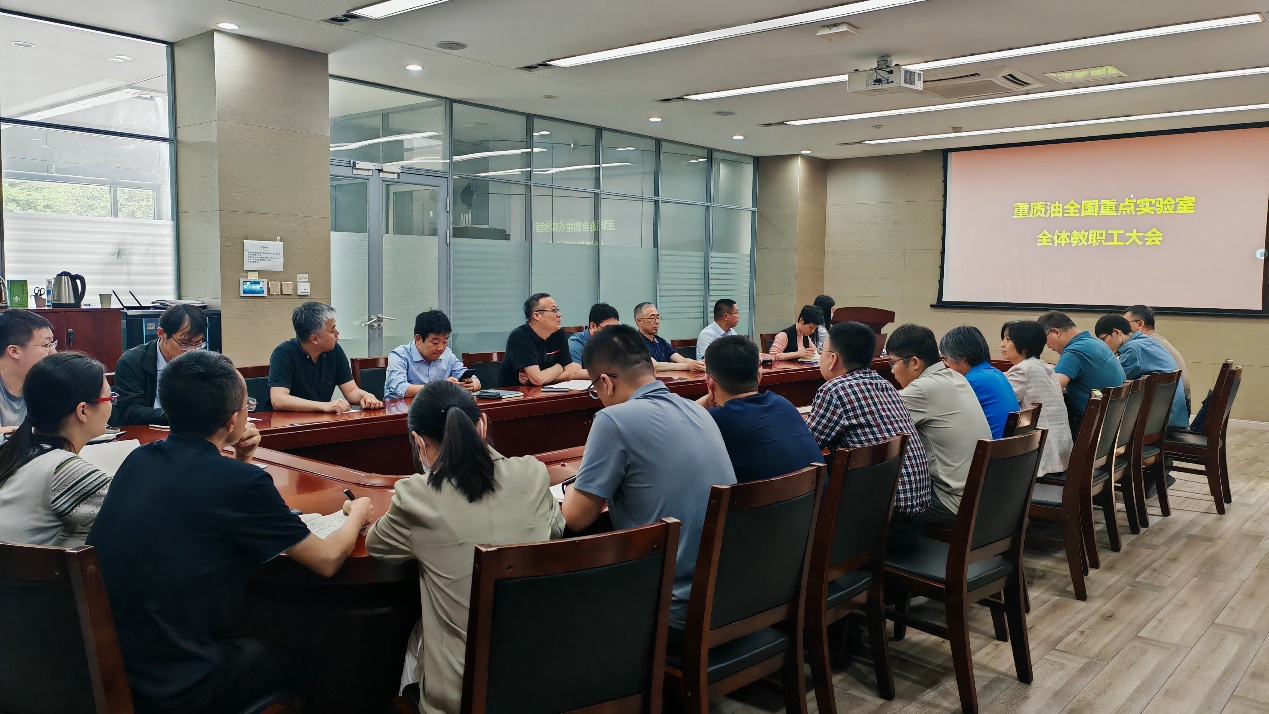 5月30日下午,重质油全国重点实验室在逸夫楼会议室召开全体教职工大会和党支部大会。