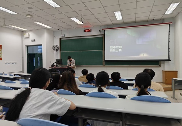 为全面总结上半学期学习成果,查找不足,明确方向,营造积极进取的期末备考氛围,我班于2025年5月29日,西环105教室成功召开了期中成绩分析大会暨期末动员会。