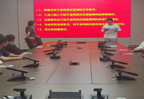 随后,进行了本次会议第二部分,主要讨论了于凌伟等2位同志发展为中共党员的相关事宜。首先两位预备党员汇报转正申请书内容,从思想教育、学习生活等方面进行充分汇报。宣读完毕后,由入党介绍人分别介绍预备党员期间内表现情况、支部委员会介绍预备党员期间内教育考察情况。紧接着,与会党员进行充分讨论发表意见。最后进行无记名投票表决,宣读票决情况,大会最终一致同意接受于凌伟等2位同志为中共党员。最后,郭祺做总结发言,对此次大会发展的2名同志表示祝贺并提出更高的要求,要求同志们在思想上、行动上时刻与党中央保持高度一致,时刻保持清醒头脑,时刻以一名共产党员的标准严格要求自己,发挥先锋模范作用。