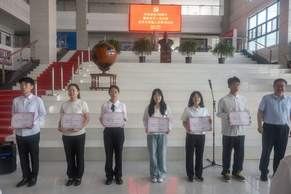 学院在唐岛湾工科楼A座大厅举行庆祝中国共产党成立104周年活动 潘浩摄影