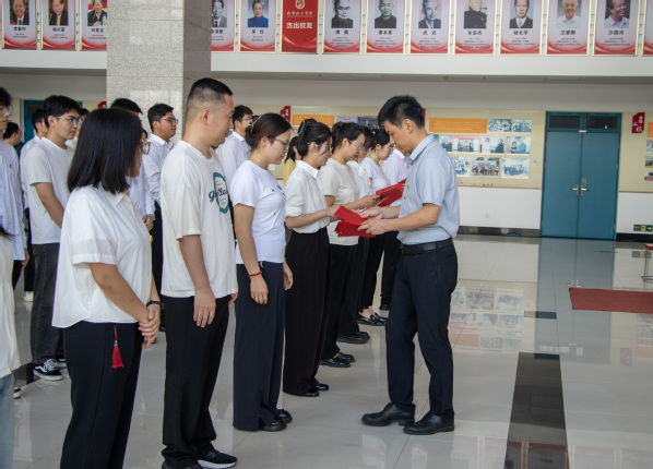 为发挥党员先锋模范作用,经过支部推荐、组织考察、评审公示等环节,学院党委选树表彰了10名优秀学生党员,授予他们2025年度“化蕴星青年”暨优秀学生党员荣誉称号。学院党委书记张永宁为获奖同学颁发证书,号召全体党员以先进为榜样,在学习工作中彰显责任担当。