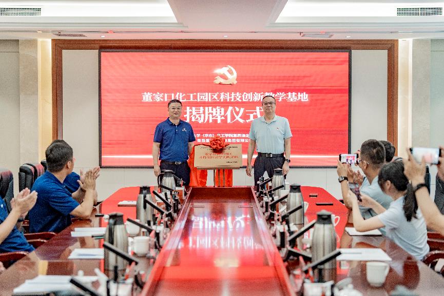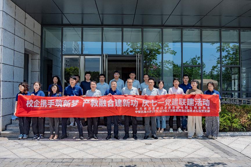 为迎接中国共产党成立104周年,深入学习贯彻习近平新时代中国特色社会主义思想和党的二十届三中全会精神,6月30日上午,重质油全国重点实验室支部书记柴永明带队赴董家口化工园区进行联合党建、产教融合等工作交流,党支部联合青岛董家口发展基团党委,开展“校企携手筑新梦,产教融合建新功”党建联建主题党日活动暨董家口化工园区科技创新教学实践基地揭牌。国重室支部教师党员柴永明、朱丽君、覃正兴、刘宾、李大伟、刘贺、王敬贤、宗培杰和多名学生党员代表等参加交流活动。