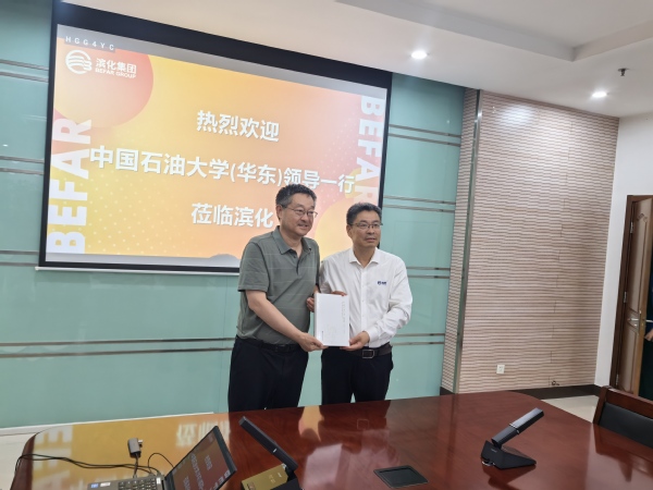 7月2日下午,张永宁一行首先来到滨化集团股份有限公司。在参观完企业文化展厅后,双方就人才培养、科研合作、实习实训及企业员工培训等话题进行了广泛而深入的探讨。滨化集团副总裁刘洪安详细介绍了公司的生产运营情况、技术创新成果及未来发展规划,并对化工学院长期以来为公司输送高质量人才表示感谢。张永宁书记介绍了学院的基本情况、学科优势及近年来在科研和教学方面取得的成果,并希望双方在现有合作基础上,进一步拓展合作领域,实现优势互补、共赢发展。最后,张永宁向滨化集团副总裁刘洪安赠送了太阳成集团tyc33455cc校史。