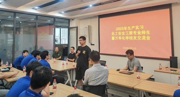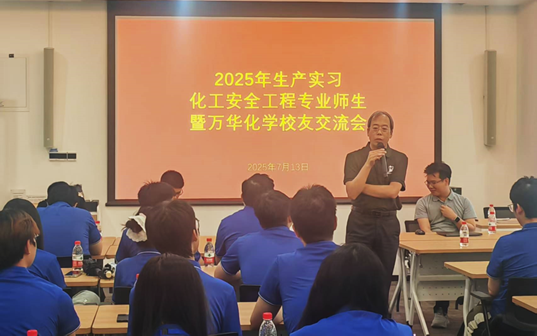 为深化校企协同育人机制,提升人才培养质量,7月13日,学院副院长刘义带队赴烟台万华人才中心,看望正在万华进行生产实习的化工安全工程专业2022级学生,并组织召开了校友座谈会。环境工程专业2007级校友何彬、化工安全工程专业2018级校友董江龙、化工安全工程专业2019级校友蒋振华,以及学生就业指导中心副主任朱景顺受邀出席活动。环境与安全工程系教师孟亦飞、陈强一同参加。