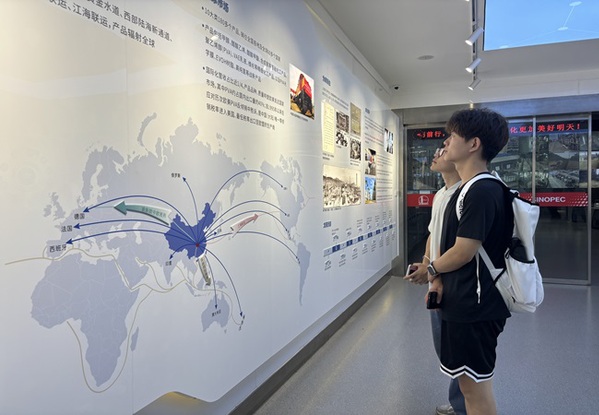 随后,实践队来到现场中控室。调度室值班主任朱伟向队员们全面介绍了公司的发展脉络:从 1973 年国家计委批复建设,到 2024 年深入学习贯彻党的二十届三中全会精神,全面深化体制机制改革,川维化工有限公司已成为全国四大化纤基地之一。经过 50 多年的发展,如今,川维化工有限公司是国内最强最大的以天然气为原料的特色精细化工和新材料企业。中控室两侧墙上 “坚持创新引领,实施‘一个基础、四朵金花’发展战略,奋力打造世界领先特色精细化工和新材料公司” 的口号,传递出企业的发展愿景与决心。访谈中,针对实践队队长邱泽子俊提出的大学生就业问题,朱伟主任给出了恳切解答:“公司在招聘时,更加看重应聘者的学习能力和为人品质。”