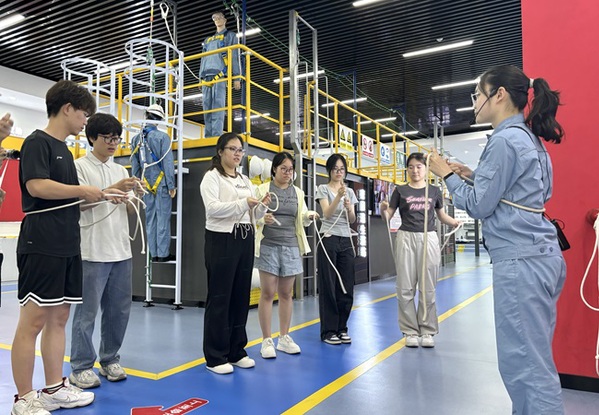 最后,实践队来到安全解说区域,在实训基地讲师杨玉婷循循善诱的引导下,队员们化身求知若渴的探索者,沉浸式参与安全防范方法研习与设施互动体验。此间,欢声笑语交织着知识的碰撞,队员们在轻松愉悦的氛围中,将化工产业的安全知识深植于心,仿若在知识的沃土中播撒下守护安全的种子。