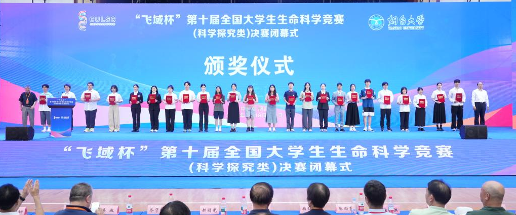 “飞域杯”第十届全国大学生生命科学竞赛(科学探究类)决赛于2025年7月20日在烟台大学圆满落幕。本届竞赛共有来自695所高校的21304个团队参加,8万余名学生参与,为历届赛事规模之最。共产生一等奖494项,二等奖761项,三等奖2277项。我院本次共组织20支队伍参赛,喜获国家奖一等奖2项、二等奖4项、三等奖7项,山东省赛区奖一等奖8项、二等奖10项、三等奖2项。参赛团队获奖数量和质量再次取得历史新突破。