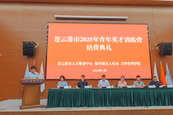 7月21日,2025年徐圩新区青年英才训练营开营仪式在方洋管理学院召开,徐圩新区党工委委员、管委会副主任安军伟、连云港人才服务中心主任苗泉、徐圩新区人社局主任段向东、徐圩新区党群工作部副部长王艺颖出席会议,各高校指导教师和学员参加,方洋管理学院副院长吴昊主持会议。会上,段向东介绍训练营情况,苗泉为训练营授旗,兰州大学博士吴顺达作为学员代表发言,中国石油大学(北京)辅导员任亭霖作为学校代表发言,安军伟作总结讲话。