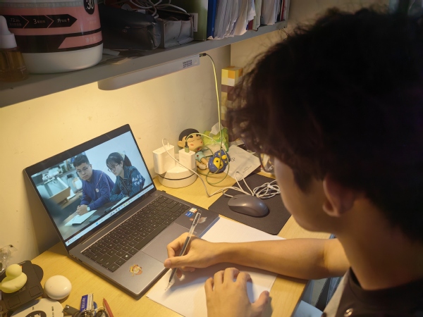 2025级新生,应化专业赵新鹏在家观看专题片