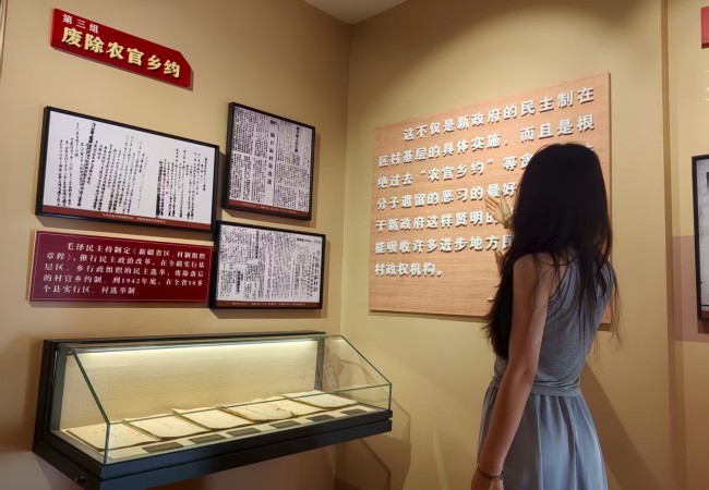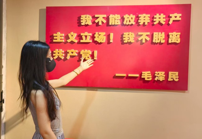 队员曾璐虹浏览毛泽民事迹展板 赵振皓摄