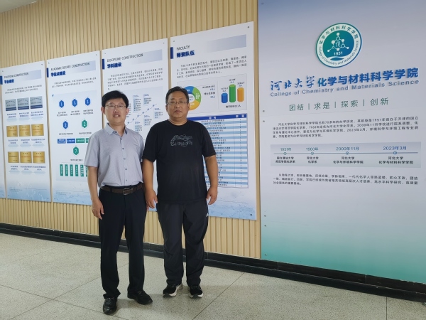 7月14日,第五届全国大学生化学实验创新设计大赛华北赛区复赛期间,化学实验中心党支部书记张国栋到河北大学化学与材料科学学院参观学习,并与第二批全国党建工作样板支部建设项目负责人、全国高校“双带头人”教师党支部书记“强国行”专项行动团队负责人陈国锋教授进行座谈交流。