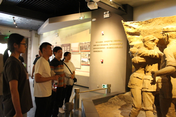 8月21日,第五届全国大学生化学实验创新设计大赛总决赛在兰州大学举行。利用答辩结束到闭幕式开始的间隙时间,化学实验中心党支部书记张国栋带领三名参赛学生参观了“红色甘肃——走向1949”展览,通过“火种篇”、“抗争篇”、“铁流篇”、“激荡篇”和“曙光篇”五个单元,系统反映了甘肃各族人民在中国共产党的领导下,前赴后继、浴血奋斗,一步步走向辉煌的伟大革命历程。黄河之水奔腾不息,正是革命先辈的奋斗和牺牲,奠定了我们现在美好生活的基础。我们既要铭记历史、珍惜和平与安宁,更要发愤图强、创造属于新时代的新功绩。学术竞赛提升学生科技创新能力,思政教育滋润学生对历史敬畏和感恩之心。