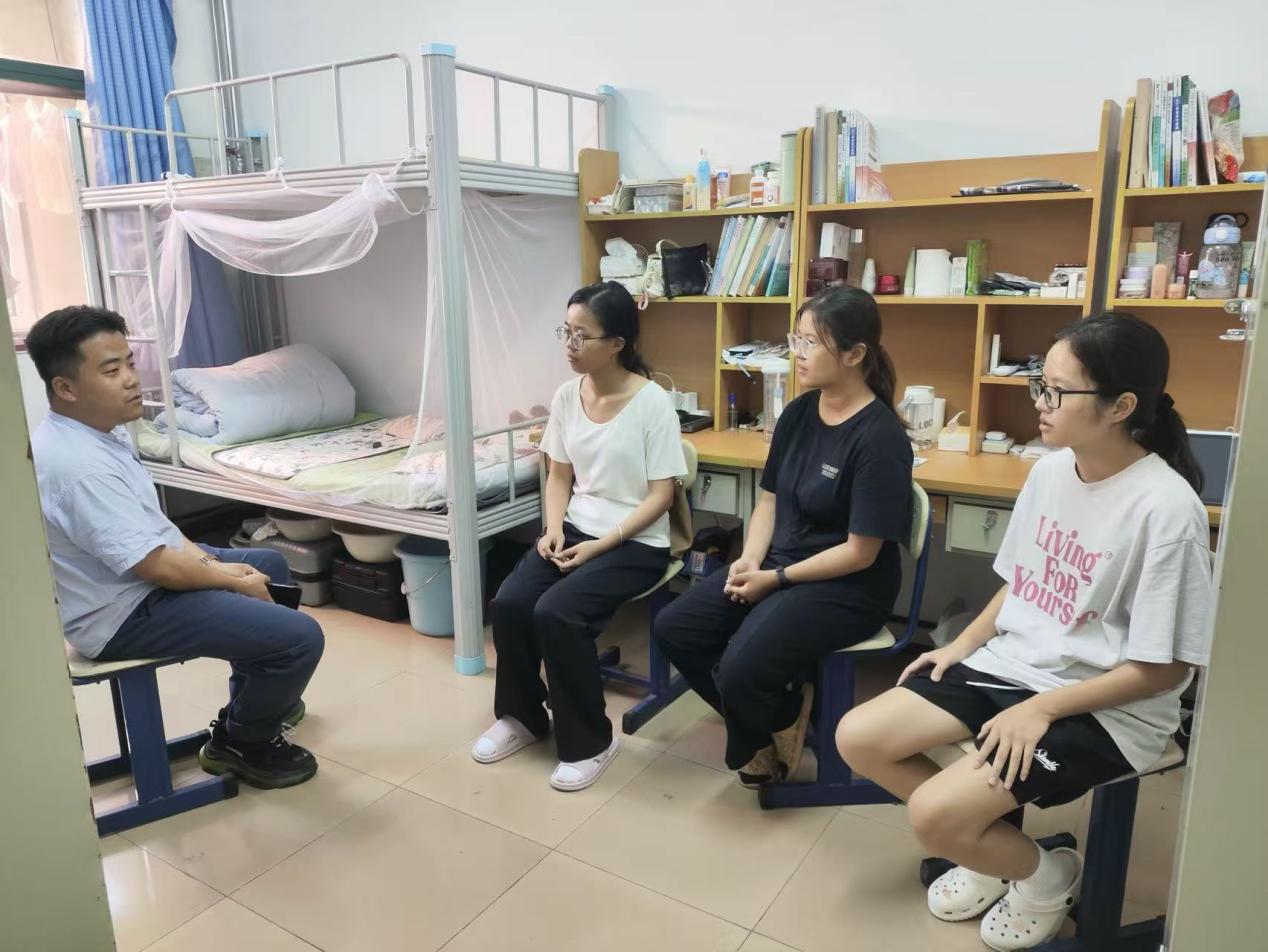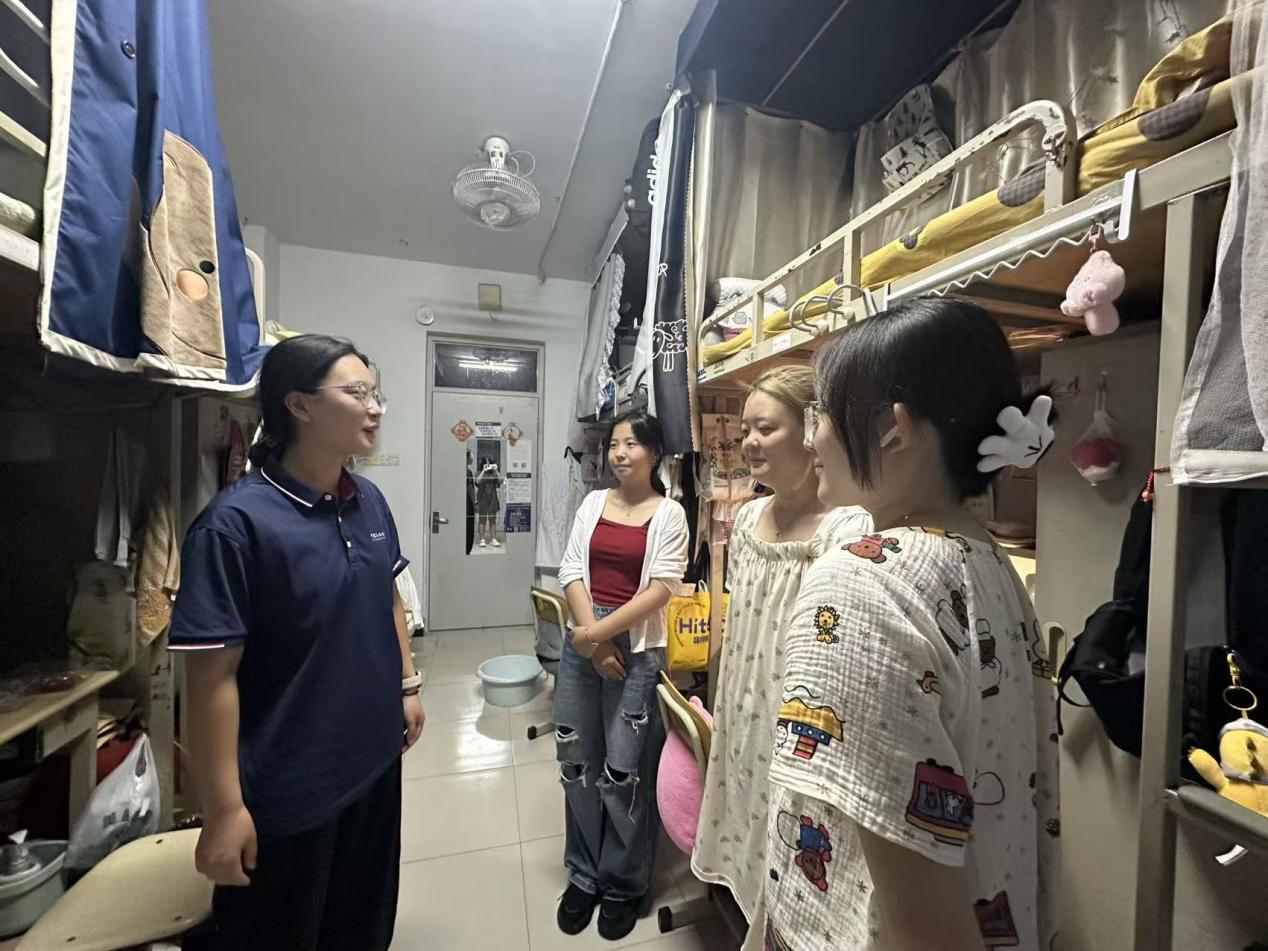 在走访过程中,学院领导与辅导员们带着对学生的深切关怀,逐间走进学生宿舍,与同学们亲切交流。每到一间宿舍,老师们都详细询问学生的返校情况、假期生活感受以及新学期的学习计划和目标,耐心倾听同学们在生活、学习中遇到的困难与需求。针对部分学生提出的课程学习疑问、考研就业规划困惑以及宿舍生活设施使用问题,老师们现场给予了细致的解答和专业的指导,同时鼓励同学们在新学期要尽快调整作息,以饱满的精神状态投入到学习和生活中,积极参与校园文化活动,不断提升自身综合素质。