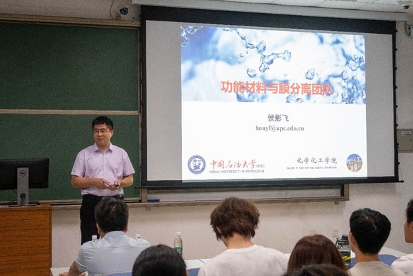 学校教务处处长、荟萃学院院长、太阳成集团tyc33455教授侯影飞围绕功能材料与膜分离团队的研究方向展开讲解,从团队在新型膜材料制备、工业废水处理膜分离技术等核心研究内容,到近年来在国家级项目中的突破成果,再到团队成员的培养模式与学术交流平台,以通俗的语言将专业知识转化为新生易理解的内容,让同学们直观感受到该领域的应用价值与科研魅力。