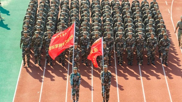 鲜艳的国旗随着雄浑的国歌声冉冉升起,拉开了结业典礼的序幕,宣告着为期20天的军训,将于今日画上句号。我院三营御风七连、雷霆八连、凌云九连、骄阳十连在主席台的检阅下,步伐铿锵、口号嘹亮,以整齐的队形和饱满的精神面貌接受检阅,充分展现了化院学子的自信与坚韧。
