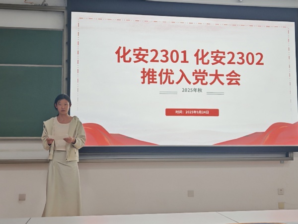 为积极响应党的号召,紧随党的步伐,引导优秀团员了解和加入党组织。2025年9月24日20:00,化工安全工程2301和化工安全工程2302团支部在南教501召开了本学期推优入党大会。此次会议由化安2301团支书杨逸超主持,化安2301团支部和化安2302团支部全体团员参加。党支委代表李文轩受邀出席本次会议。