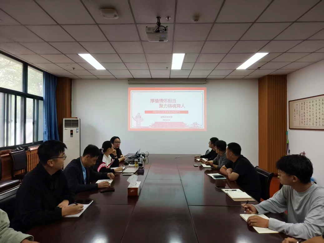 9月28日上午,辅导员党支部在工科楼A119会议室召开“厚植情怀担当,聚力铸魂育人——师德师风与教育家精神”专题学习会。会议由党支部书记窦雅琴主持,支部全体成员参会。