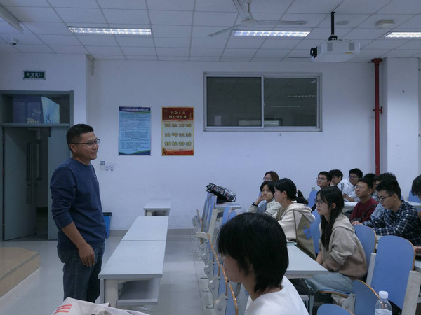 班主任曹美文在总结讲话中,结合新生适应期特点,简要分析了学生们刚入大学可能面临的学业规划、人际关系、生活自理等困惑。他从“认知调整—目标拆解—资源对接”三个维度提供指导,鼓励大家主动适应新环境,积极参与班级活动与学科交流,通过制定阶段性计划、主动向师长请教等方式,平稳度过迷茫期。