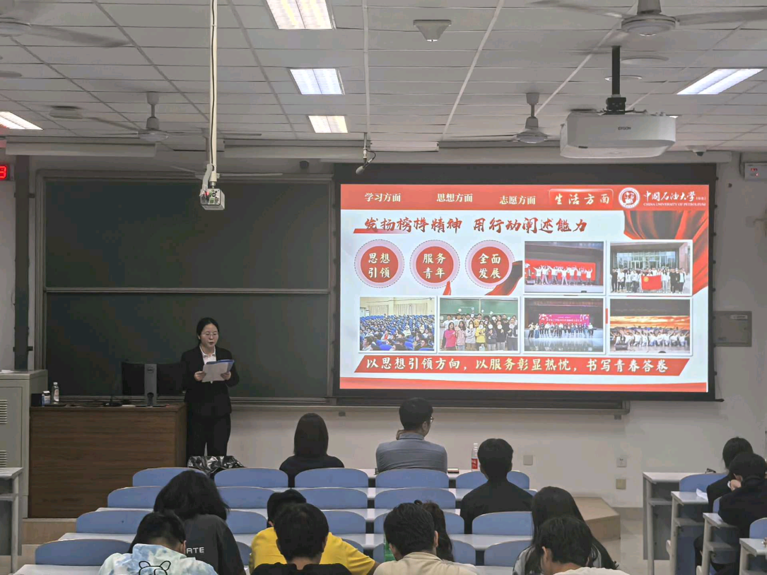 答辩开始前,24级辅导员王兆兴详细讲解了此次奖学金的评选标准与评分细则,同时希望候选人展现新时代青年的担当与风采。随后,候选人依次登台,通过PPT汇报系统展示学业成绩、科研成果、社会实践、志愿服务等多个维度,全面而生动地展示了自己大一学年的成长与收获。评委们认真聆听,依据评审标准,从学生的各方面表现进行考量,进行针对性的点评,提出了中肯的成长建议。