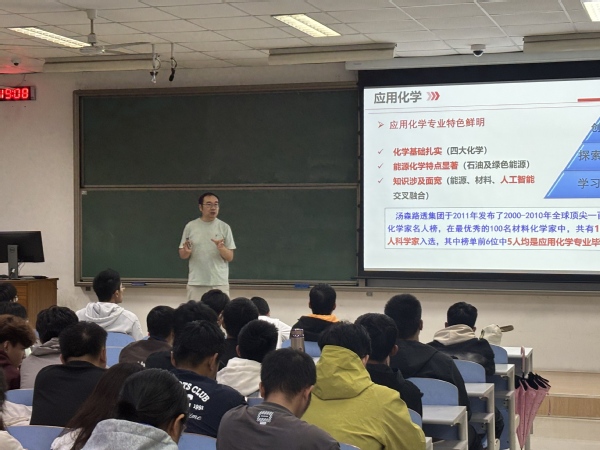 介绍会伊始,李鹏主任以“专业基本情况与历史沿革”为切入点,为新生们搭建起对应用化学专业的初步认知框架。他详细梳理了专业的发展脉络,着重强调应用化学专业悠久的办学历史与雄厚的学科实力——不仅办学水准在全国位居前列,更形成了“实验丰富、基础扎实、以能源化学为特色、知识涉及面宽”的鲜明优势,让新生们直观感受到专业的硬实力,为后续专业学习注入信心。同时,李鹏主任明确指出,应用化学专业旨在培养具备“创新意识、系统思维、国际视野”的复合型人才,为新生们清晰界定了大学期间需重点锤炼的核心素养。